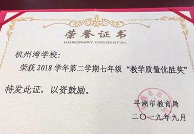 喜報|高新教育集團旗下平湖杭州灣實驗學校初中部教學質量喜獲雙
