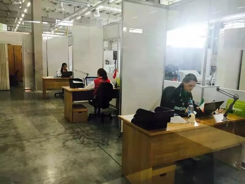 進入賽場,過了安檢后,直入眼簾的就是一個個比賽項目區域,由不同的英文字母標示。由于當天只有3個小時參觀,所以執行校長肖中圓一行結合學校開設的專業去各比賽現場了解。