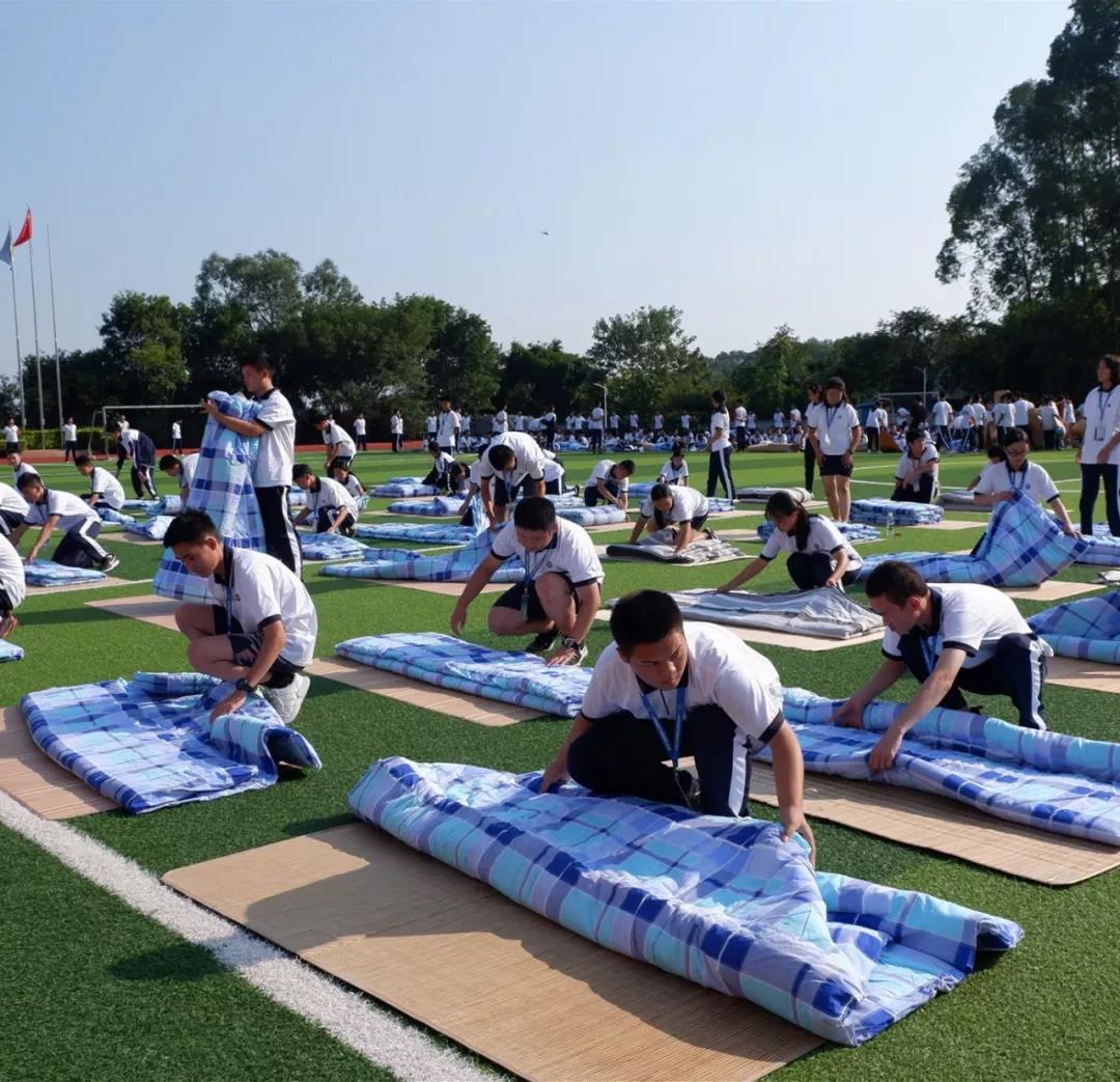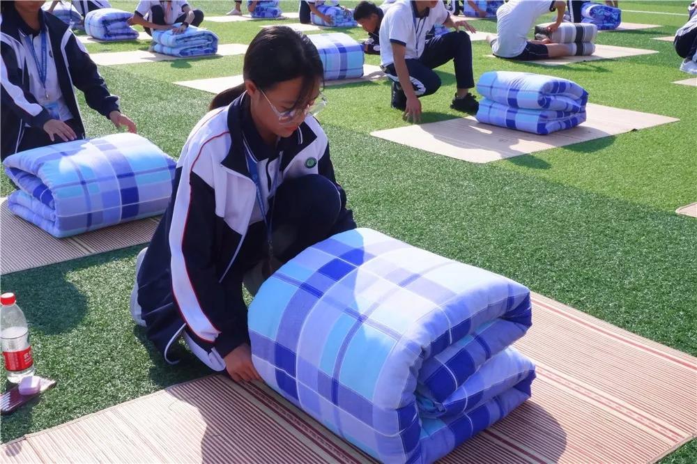 活動(dòng)開(kāi)場(chǎng),全體師生奏唱校歌,很快激烈的疊被子比賽開(kāi)始了。比賽實(shí)行分組對(duì)抗淘汰制,三局定勝負(fù)。