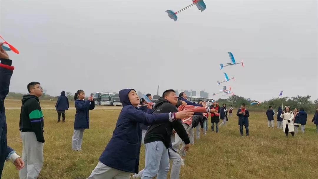 隨后,同學們分小組合作完成了飛機模型,并開始了航模表演。同學們昂首看向天空,看向那承載著自己夢想的航天飛機,臉上滿是興奮、自豪的神情。