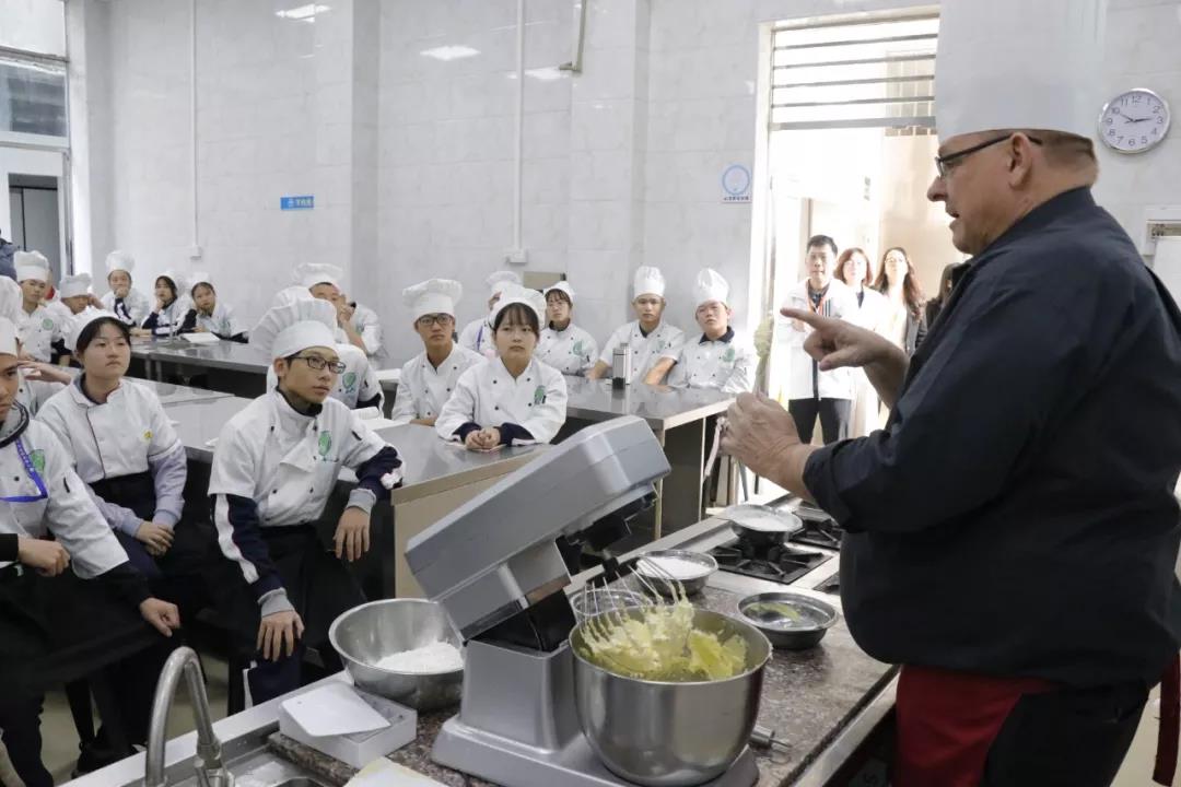 12日上午,包括澳大利亞政府貿(mào)易投資委員會(huì)商務(wù)官員周覓瓊、EHI校長(zhǎng)Mr.Stuart、首席運(yùn)營(yíng)官M(fèi)s.Bubpa、亞洲區(qū)域市場(chǎng)經(jīng)理周敏怡、中國(guó)項(xiàng)目經(jīng)理歐陽(yáng)云在內(nèi)的一行來(lái)賓便早早抵達(dá)我校,在我校領(lǐng)導(dǎo)及老師的陪同下參觀了烹飪專(zhuān)業(yè)各大實(shí)訓(xùn)室。