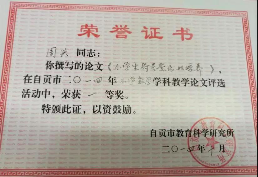 高級教師,自貢市名教師,市、縣首個小學(xué)數(shù)學(xué)名師工作室成員。獲市骨干教師優(yōu)質(zhì)課競賽特等獎、市說課比賽一等獎。