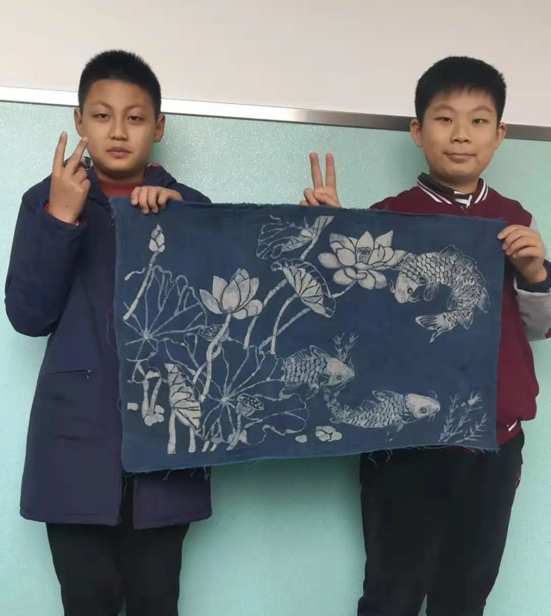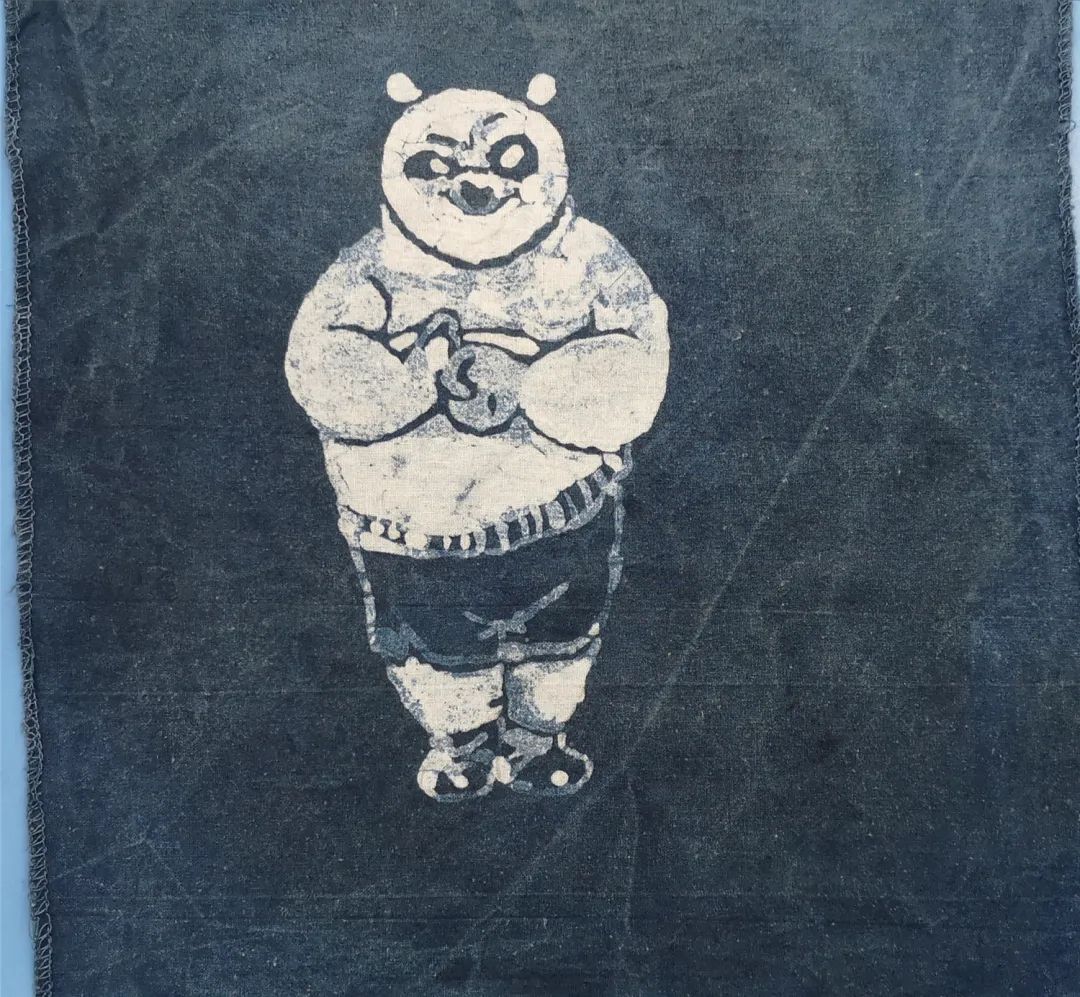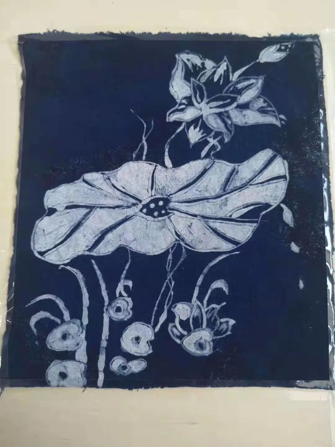 蠟染是用蠟刀蘸熔蠟繪花于布后以藍靛浸染,既染去蠟,布面就呈現出藍底白花或白底藍花的多種圖案。