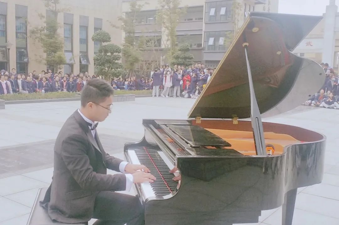 平時(shí)課堂上一本正經(jīng)的老師們也參與到了活動(dòng)中,長(zhǎng)號(hào)的渾厚,吉他的溫和,電子琴的清脆渾然一體,相輔相成。