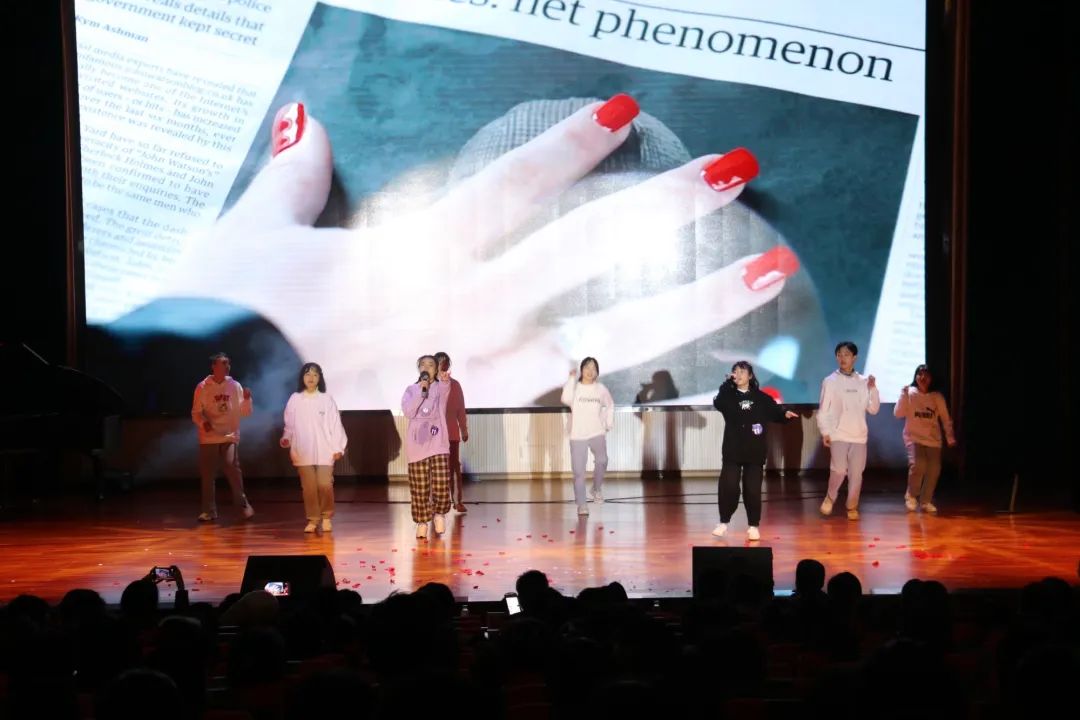 他們積極創(chuàng)新表現(xiàn)形式,豐富多彩的節(jié)目表演讓觀眾享受視覺(jué)和聽(tīng)覺(jué)的雙重盛宴——搖滾熱血的勵(lì)志歌曲《closer》嗨翻全場(chǎng),尖叫聲經(jīng)久不絕;古風(fēng)戲曲《赤伶》二胡,古箏作為伴奏情景交融,一場(chǎng)生死別離讓觀眾身臨其境;熱血紅歌《烈火戰(zhàn)馬》和流行rap的結(jié)合歌唱出祖國(guó)大好河山,觀眾們也熱血沸騰,精神倍增;經(jīng)典歌曲《紅玫瑰》將歌曲和舞蹈相結(jié)合,悠揚(yáng)的歌聲和動(dòng)作協(xié)調(diào)的二人舞,讓觀眾意猶未盡。