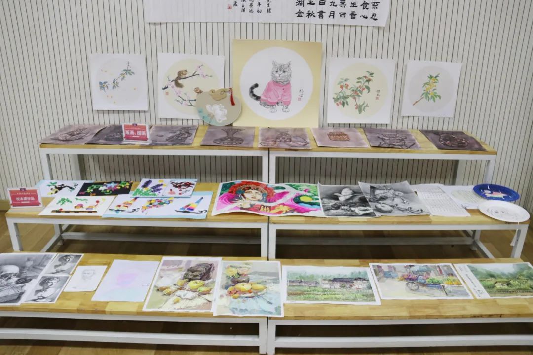 此次展覽共展出校本作品400余件,以校本教材、導(dǎo)學(xué)案、3D作品打印、手工、扎染、國畫、書法、陶藝、創(chuàng)意繪畫等創(chuàng)作為主。作品立意獨特,想象奇妙,童趣盎然,突出了鮮明的時代主題。此次校本作品展覽既是素質(zhì)教育的展示、也是審美情趣的展示,在孩子們的作品中,我們可以看到他們將國畫、扎染、手工、書法等技藝嫻熟運用。