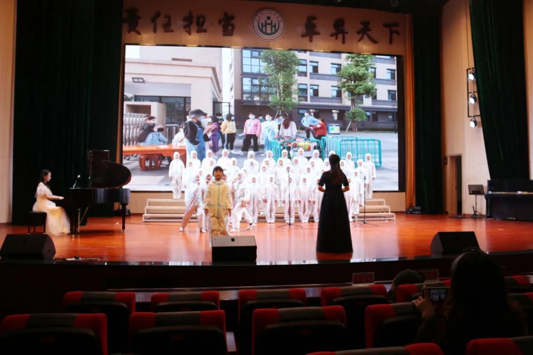 《女兒的日記》,該歌曲由我校唐貴飛老師根據(jù)富順赴武漢抗疫醫(yī)護(hù)人員馮敏女兒的日記創(chuàng)作。孩子們現(xiàn)場深情演唱,重現(xiàn)抗疫期間令人敬佩的最美逆行者!