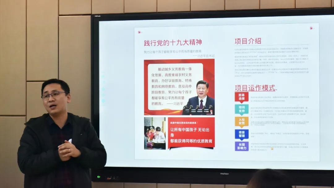 廖杞南理事長(zhǎng)從招募選拔、培訓(xùn)支持、入校安置、項(xiàng)目管理、長(zhǎng)期影響力等方面介紹項(xiàng)目的運(yùn)作模式,從線下培訓(xùn)交流活動(dòng)、線上培訓(xùn)資源庫交流平臺(tái)、個(gè)性化發(fā)展資源分別介紹項(xiàng)目老師們的培訓(xùn),從三個(gè)維度、五個(gè)階段、五種方式講解項(xiàng)目老師的發(fā)展藍(lán)圖,結(jié)合項(xiàng)目影響力、課堂影響力、社區(qū)影響力、往屆校友去向以及合作伙伴等層面的概述使我校領(lǐng)導(dǎo)們更加了解美麗中國項(xiàng)目的培養(yǎng)模式。美麗中國將全國各地優(yōu)秀人才匯聚到最艱難的地方,向大眾昭示著這樣的培訓(xùn)對(duì)于非師范專業(yè)老師也是一條道路,同時(shí)也深刻感受到這所“另類”師范的獨(dú)特魅力。